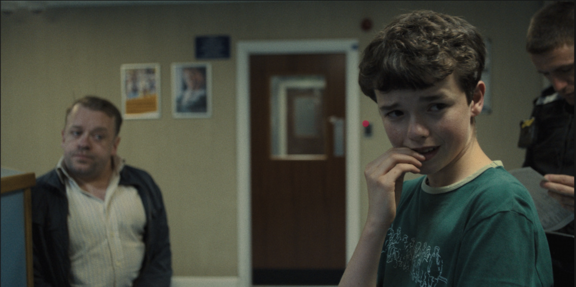카메라는 경찰이 새벽에 제이미의 침실로 들어와 체포하는 첫 장면부터 시작해 그가 경찰서로 이송되고, 법적 조언을 받고, DNA를 채취하는 등 평범한 듯 하지만 범죄 드라마에서 곧잘 생략되고는 하는 과정들을 원테이크로 고스란히 담아냅니다. 그리고 이 기법은 제이미와 그를 따라온 가족들이 받는 심리적 충격과 스트레스를 섬세하게 묘사하죠.
